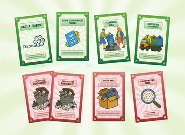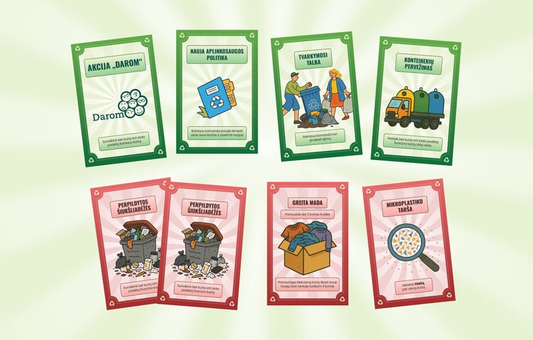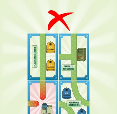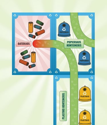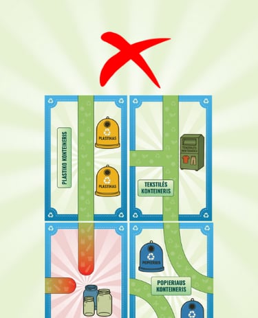 Švarūno komanda gali uždengti šiukšlių kortas atitinkamomis konteinerių kortomis, taip atlaisvindama kelią.